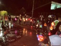 Gegen 17 Uhr brach der Martinszug auf. In den Wochen zuvor wurden fleißig Laternen gebastelt und Lieder geübt. Auch der Regen konnte uns vom lauten und schönen Gesang nicht abbringen. Wie jedes Jahr schmückten die Bewohner ihre Häuser entlang der Route mit eigenen Laternen, Fackeln, Lichterketten oder ähnlichem, sodass die Atmosphäre unseres Umzuges noch weiter unterstrichen wurde. Zudem wurden wir auch in diesem Jahr von einer Bläsergruppe begleitet und musikalisch unterstützt.